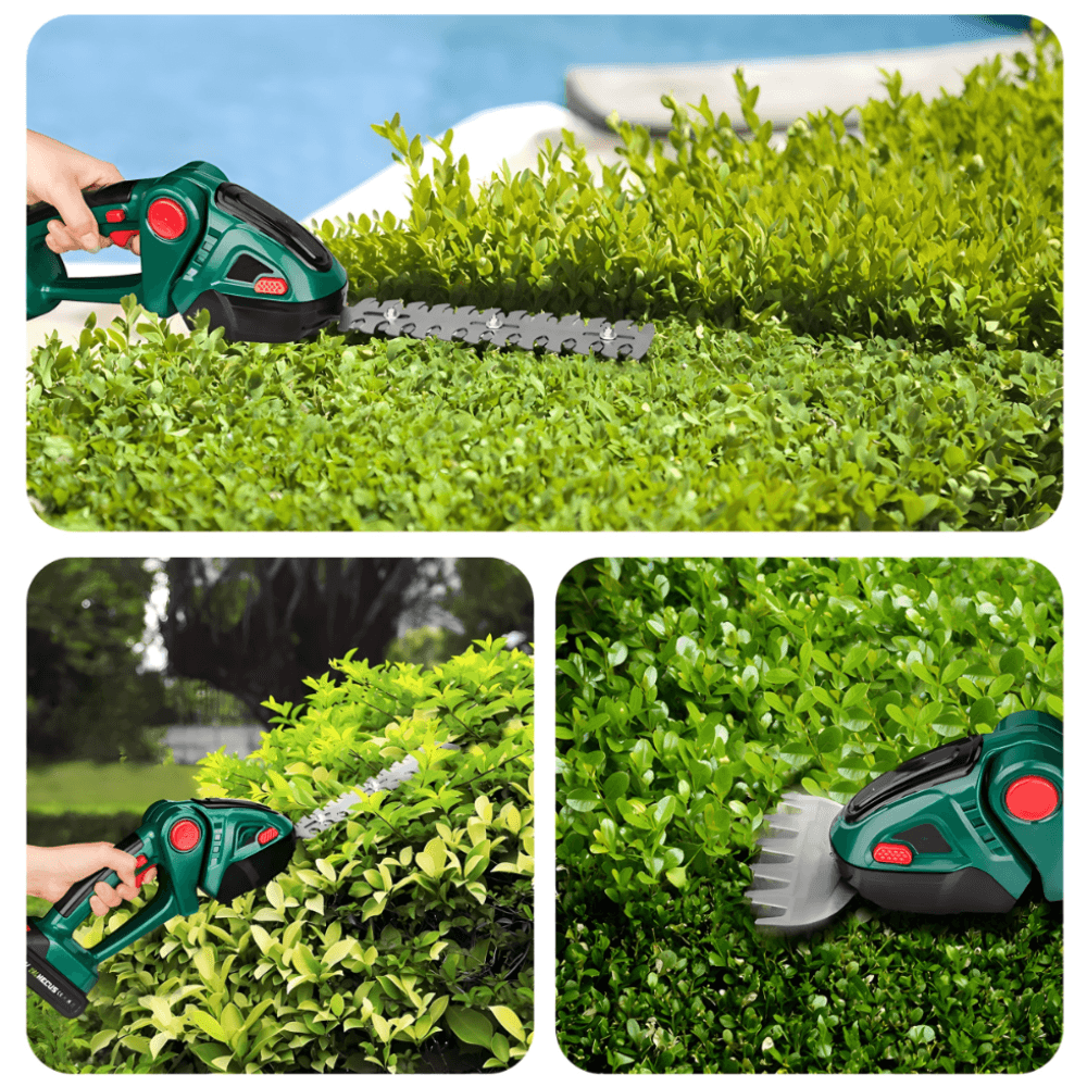 Naš 2u1 aku trimer je idealno rešenje za vas! Sa moćnom baterijom i dvostrukom funkcijom, omogućava vam da lako i brzo orezujete živu ogradu bez umora.